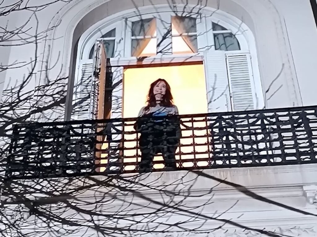 La expresidenta Cristina Kirchner salió esta noche al balcón de su casa en San Telmo, donde cumple su condena en prisión domiciliaria, y saludó a la militancia que se congregó para apoyarla a tres años del atentado en su contra.