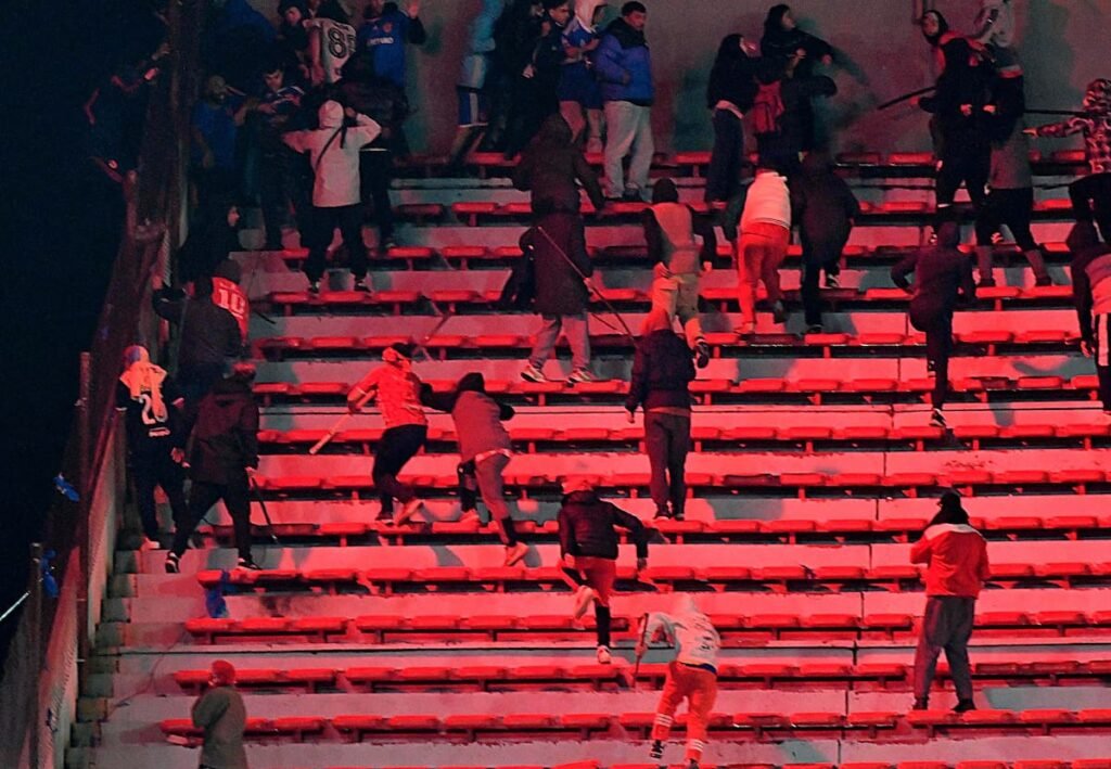 El árbitro detuvo el partido cuando la situación se tornó insostenible. Se solicitó la evacuación de la parcialidad visitante, pero la violencia continuó, lo que llevó a la suspensión definitiva.
