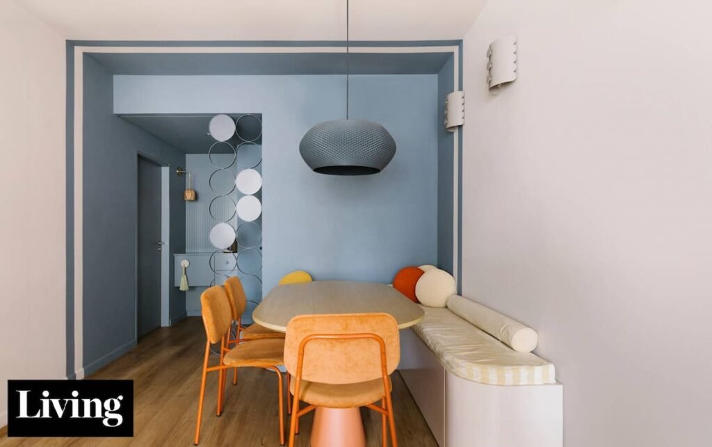 El proyecto comenzó con la cocina y los baños, seguido del comedor y finalmente del living. Cada área fue diseñada para contar su propia historia, logrando una transición fluida entre los espacios. La elección de colores y formas, incluyendo una raya azul en la pared que conecta el hall con el living-comedor, fue clave para mantener la cohesión del diseño.