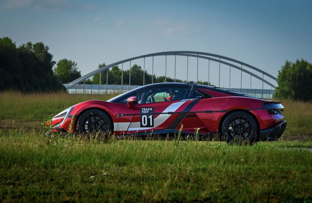 Este coupé de dos puertas está construido sobre la plataforma e4 y cuenta con un sistema de control de carrocería denominado “DiSus-X”, que permite realizar giros de 360° y saltar sobre baches. Además, está equipado con cuatro motores eléctricos independientes, cada uno con una potencia de 555 kW, lo que le otorga una potencia combinada que supera los 300 CV (2220 kW).