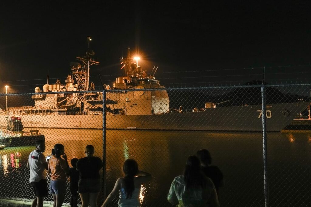 El USS Lake, que lleva el número 70 pintado en su casco, estuvo amarrado en un muelle del puerto de Rodman en días recientes. “No sabía que iba a pasar el buque. Llegamos por casualidad y lo encontramos. Quedé sorprendido”, comentó Alfredo Cedeño, un técnico en salud de 32 años que se encontraba allí con su familia.